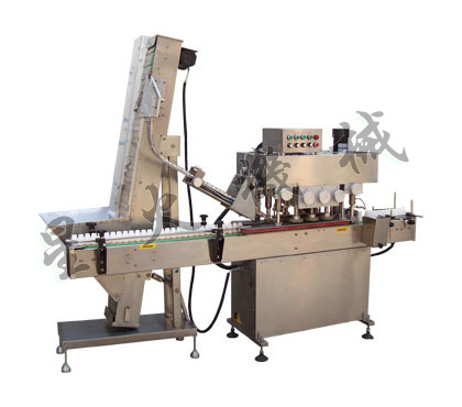 型號規格:XH-Z自動旋蓋機 主要用途: 適用于各種化妝品、醫藥、獸藥、農藥、潤滑油行業瓶蓋機設備 技術參數: 技術參數(高速自動旋蓋機) 1、工作電壓:AC220V 2、額定功率:1KW 3、生產能力 :180瓶/分鐘 4、瓶蓋尺寸:15-70毫米 5、瓶體直徑:Φ35-Φ130毫米 6、瓶體高度:50-320毫米