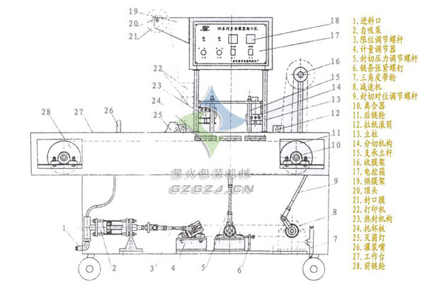 1、在開機前,封所有運轉部件加油一次,以免損壞機件,影響灌裝和封切質量。離合器要定時加注機油,一般1-2個月加油一次。先松開鎖緊螺母,取下棘爪調節螺絲,加機油后,再裝上。注意調節螺絲不能太緊,否則托杯板會在動轉時倒退。